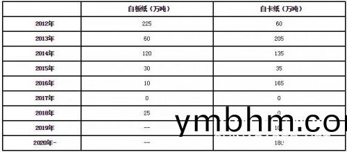 未來五年,白卡(ka)紙産能(neng)預計(ji)最(zui)低(di)投(tou)産250萬噸
